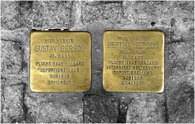 Die Steine sollen an die Opfer der Nazizeit erinnern. Die Inschriften erzählen von den ehemaligen Bewohnern dieser Häuser und ihrer Vergangenheit.