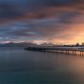 Genau so wünsche ich mir eine blaue Stunde! Und der endlose Steg wie auch der bergige Horizont macht das Format so passend. Ein Gedicht!Liebe Grüße, Peter