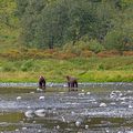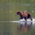 Die Bären müssen sich jetzt ihren Winterspeck anfressen und sind ständig auf Nahrungssuche. Dabei wechseln sich der Fischfang und die Beerensuche ab.