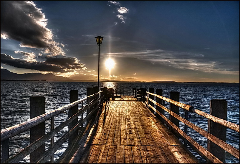 Wunderbare und äußerst sehenswerte Aufnahmen zeigst du von dem Sonnenuntergang am Chiemsee. Durch das bewegte Wasser und und dem Wolkenhimmel ist der Anblick sehr stimmungsvoll.Viele Grüße von Beate und Edmund