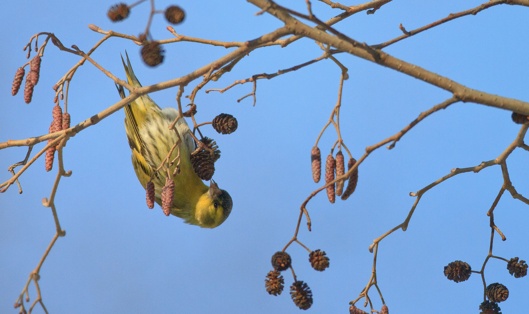 Schöne - Erle , mit Zapfen , Kätzchen und Erlenzeisig - Aufnahme.LG Johann