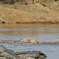 Wir entdeckten ein Rudel Löwe welche gerade am fressen waren. Zwei weibliche Löwen mit Nachwuchs unterschiedlicher Größe. Der Chef war auch dabei, hatte wohl bereits gefressen und lag einige Meter von en anderen weg.. Die kleinen Löwen spielten oder fraßen und wenn sie zum Papa kamen wurden sie abgewiesen..Einer jedoch der durfte alles beim Papa machen und er ließ es sich auch gefallen.. Das war wohl sein Liebling und das änderte sich auch nicht nach längerer Zeit.