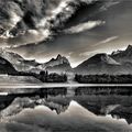Eine wunderbare Landschaftsaufnahme an diesem Bergsee mit Blick auf die imposanten Berge im Hintergrund und unter einem fantastischen Wolkenhimmel, dessen Wolken vom letzten Licht der Sonne durchleuchtet werden, wirkt dramatisch wie in einer Endzeit; Licht/Lichtstimmung und Farben sind ein Traum!Viele Grüße, Peter