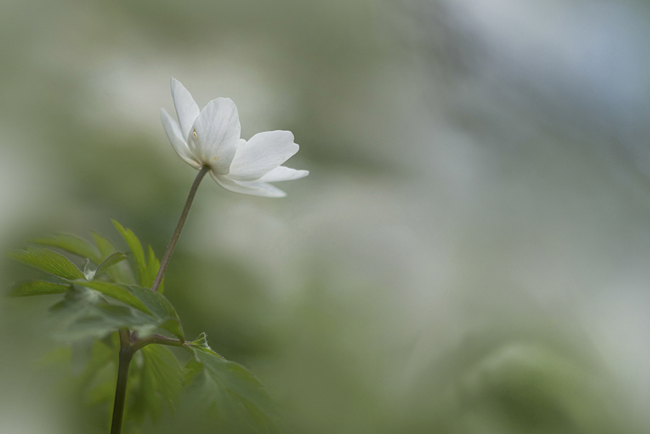 Ein einzelnes Buschwindröschen steht am Rande deines Bildes.Ganz zart erhebt es sich aus seiner grünen Umgebung und strahlt eine edle Eleganz aus....eindeutig deine Handschrift, wunderschön!